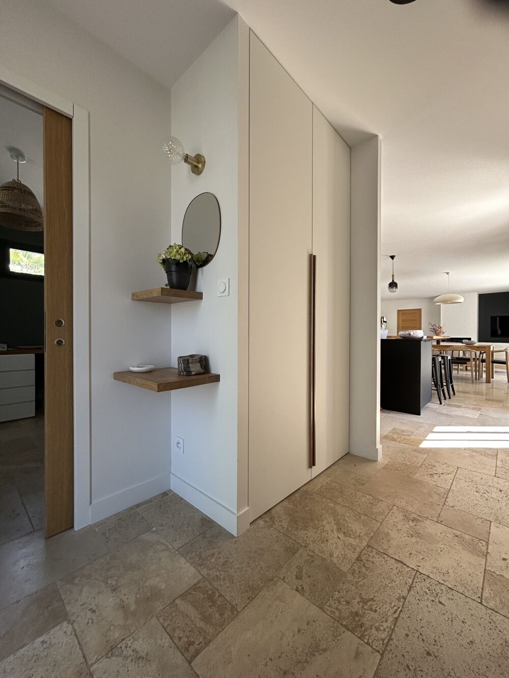 Dès l'entrée, vous serez saisi par la lumière généreuse qui inonde les pièces grâce à ses grandes ouvertures à galandages en aluminium.