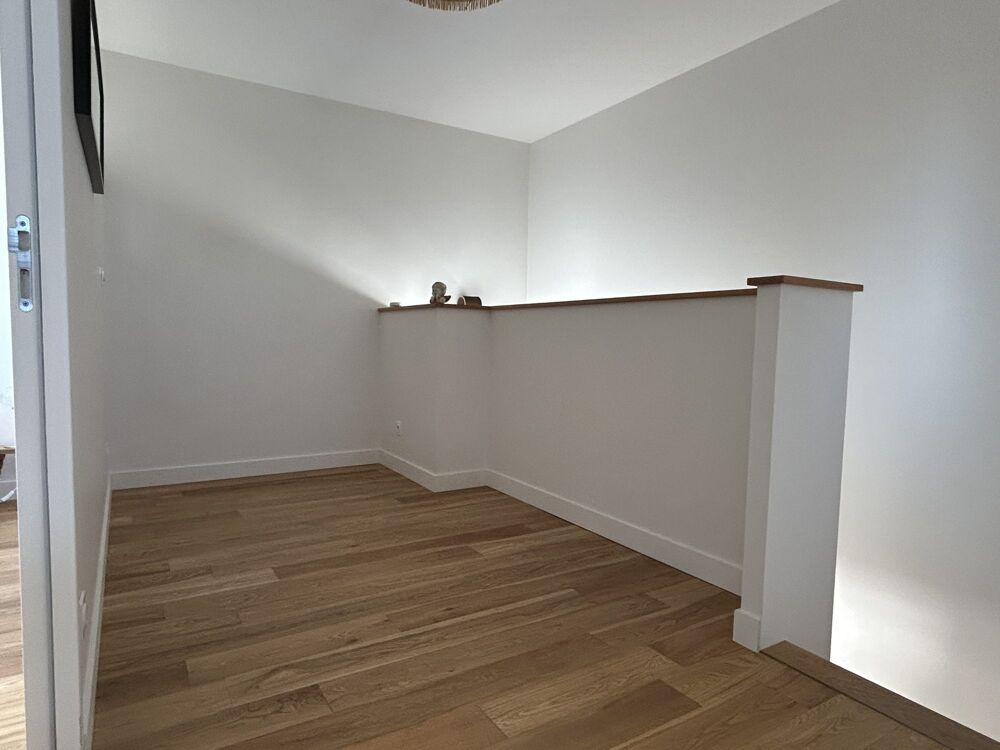L'étage comprend un palier/bureau, 2 chambres avec placard, une salle de bains avec baignoire et douche.