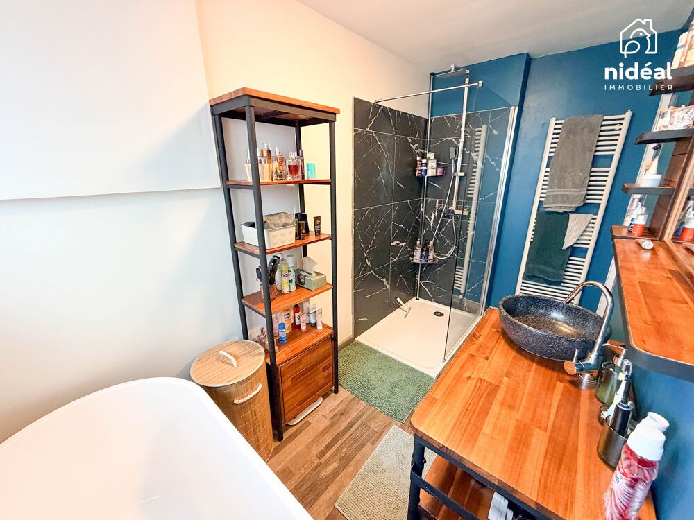 - Salle de bains avec baignoire et douche