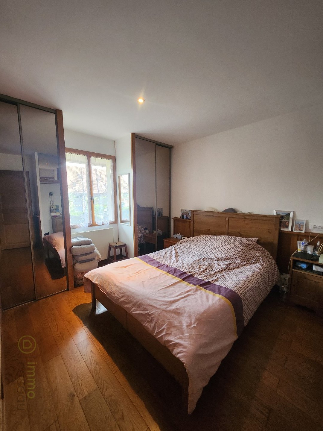 À l'étage,un beau palier, deux chambres dont une avec dressing, accompagnées d'une salle de bain et d'un WC.