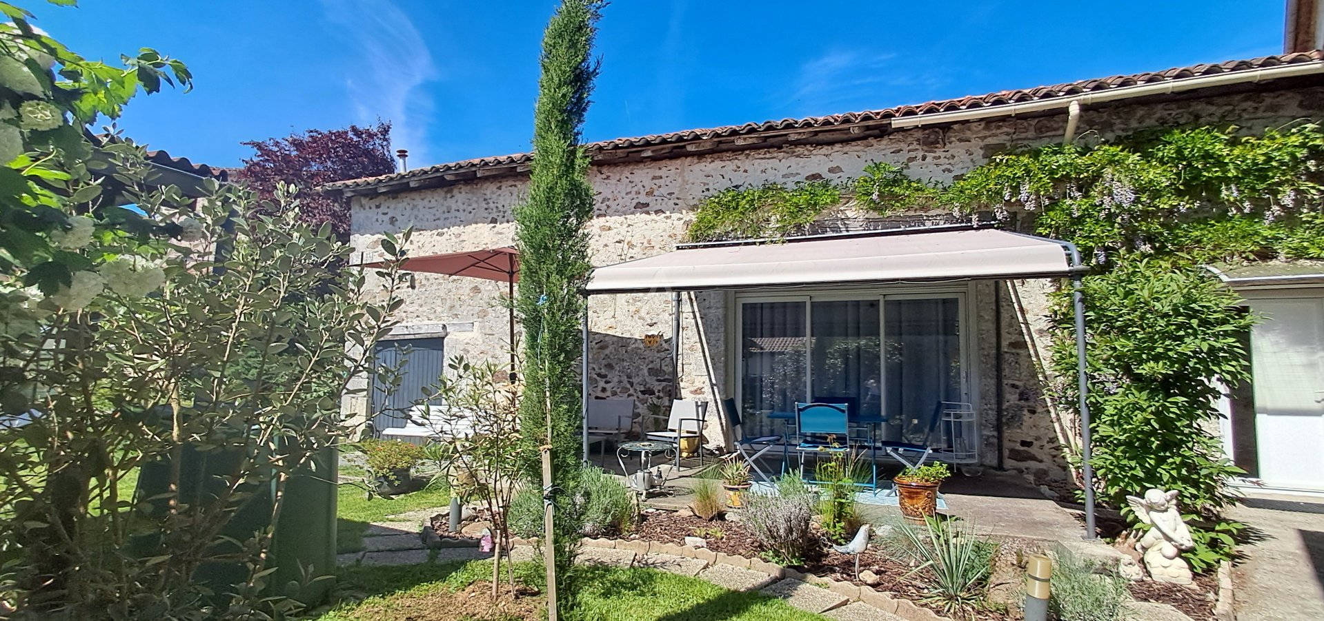 - Belle maison en moellons intégralement rénovée comprenant au rez de chaussée : entrée, belle pièce de vie (poêle à pellets) avec cuisine ouverte équipée et aménagée, buanderie, salle d'eau avec WC, une chambre avec dressing.