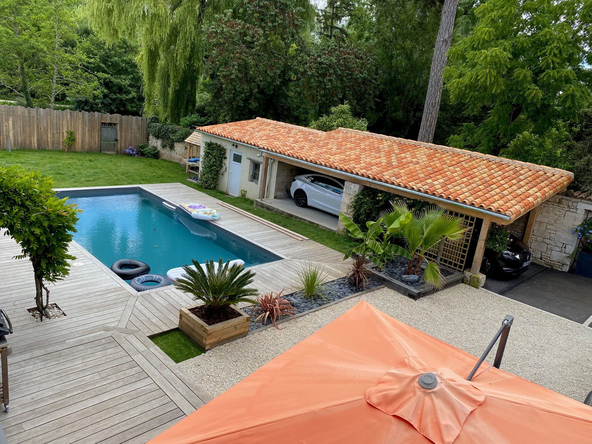 Ce bien dispose d'une piscine privée avec grande terrasse et son local technique, accès privilégié à la Sèvre niortaise, un grand carport, place de stationnement.