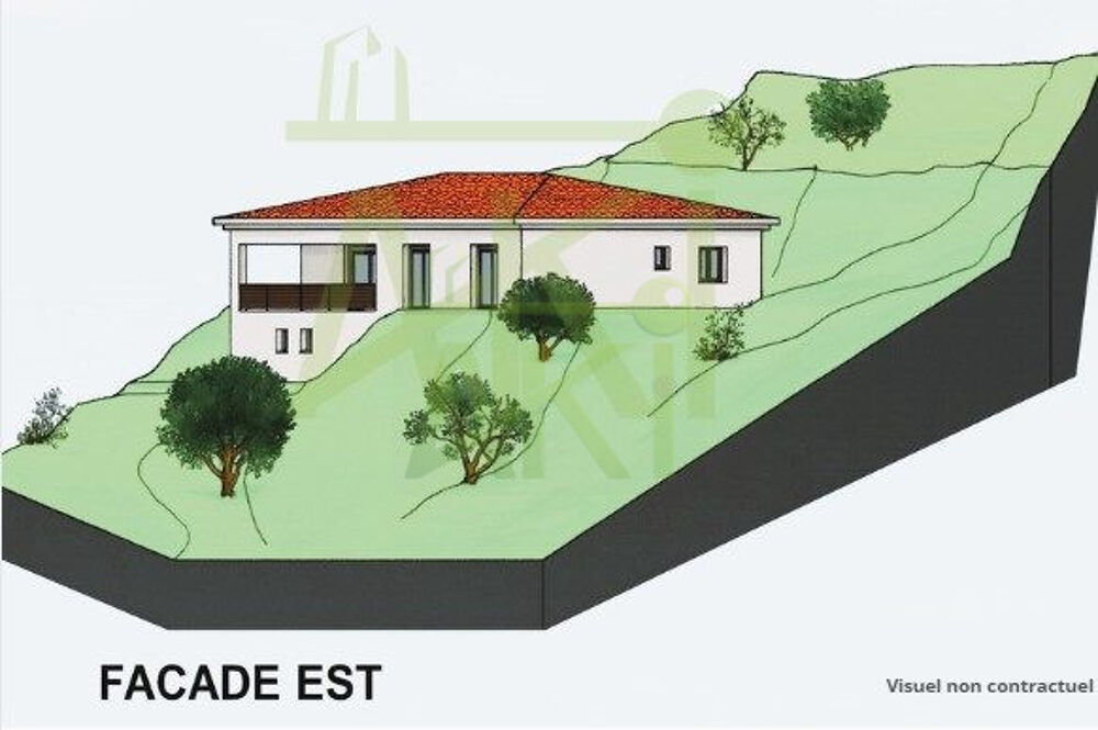 Sur un terrain pentu de 1597 m², offrant une vue imprenable sur les montagnes environnantes, villa de 120 m² sur deux niveaux, dont l'habitation principale sera de plain-pied et le garage ( 50m² ) au niveau R-1.La terrasse spacieuse vous invite à profiter des doux rayons du soleil tout en admirant le paysage montagneux.