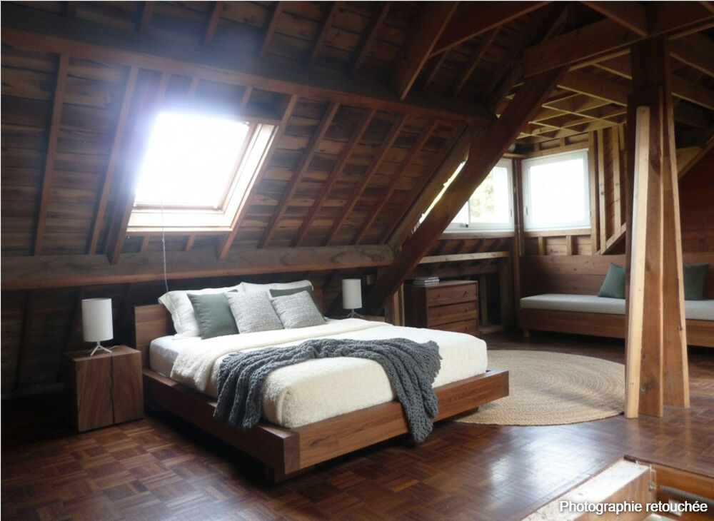 A l'étage, avec sa vue sur la mer, vous pourrez conserver toute la chaleur de la belle charpente.