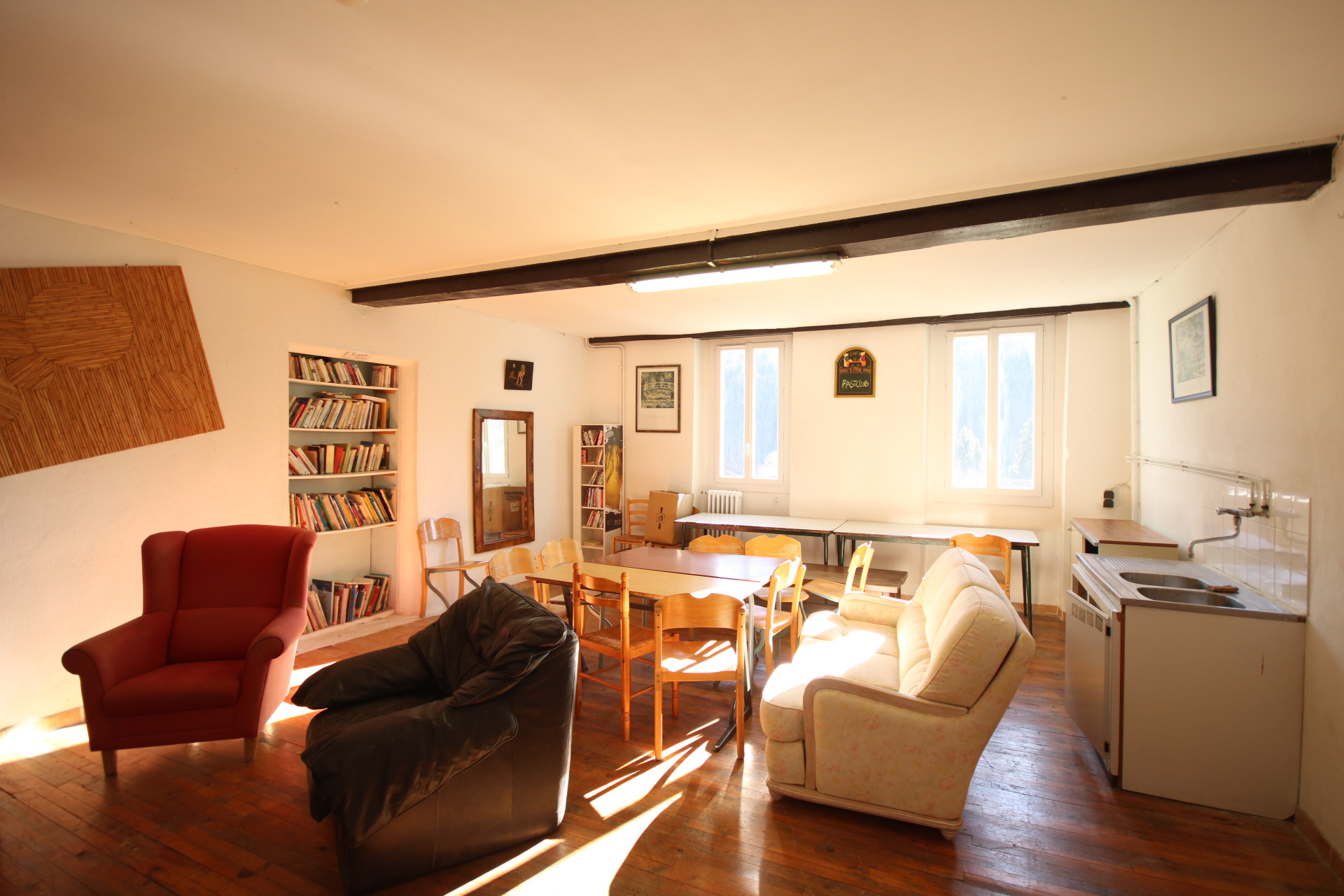 La partie principale de comprend : une entrée, 2 grandes pièces/salle de réception/détente, salon/séjour, cuisine professionnelle équipée et séparée, 15 chambres avec, pour la plupart leur propre salle d'eau.