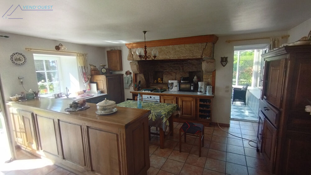 Dans la campagne de Scaër cette belle propriété avec le charme des anciennes pierres comprend une maison ancienne avec des volumes généreux et son gîte. La maison comprend une très belle pièce de vie avec sa cuisine équipée, son séjour avec un poêle norvégien, une belle véranda permet de profiter du cadre intime et reposant de l'environnement, un dégagement dessert une salle d'eau et son wc indépendant. A l'étage il y a deux belles chambres avec dressings. Un penty rénové indépendant complète le bien, il dispose de tout le confort avec son coin cuisine, son séjour et son poêle à bois, sa salle d'eau également en rez de chaussée, à l'étage il y a une mezzanine qui sert de dortoir et une chambre. Aucun travaux n'est à prévoir. Pour plus d'informations veuillez contacter l'agence immobilière vend'ouest par mail ou par téléphone 06/62/96/67/46.