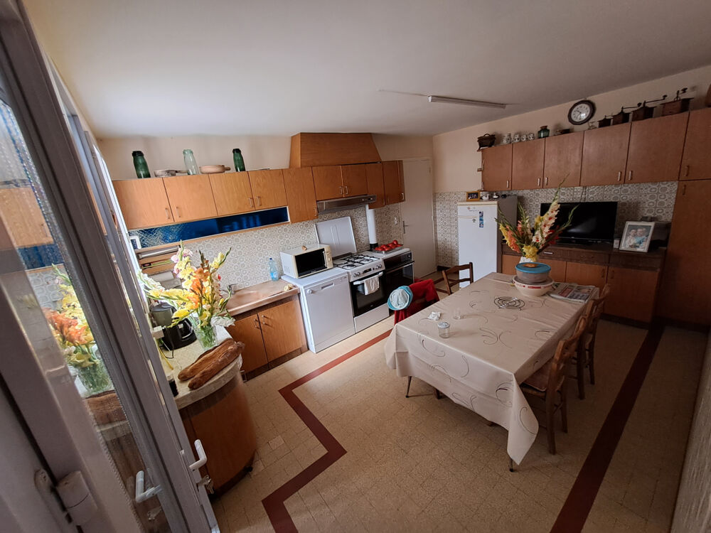 Ensemble immobilier offrant une maison de plain-pieds des années 60 de 120M2 habitable se composant d'une cuisine, salon double, salle à manger, 3 chambres, salle de bain, wc, terrasse. Double vitrage, chauffage poêle à bois dans la cuisine et cheminée,