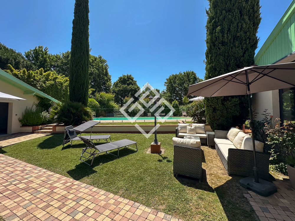 Piscine sécurisée entourée de plages conviviales, Cuisine d'été élégante de 15 m2, Terrain privé de volley-ball, Dépendance de 19 m2 avec salle d'eau, parfaite pour des invités ou un bureau indépendant, Garage triple de 75 m2 avec portes motorisées,Local piscine de 8,62 m2