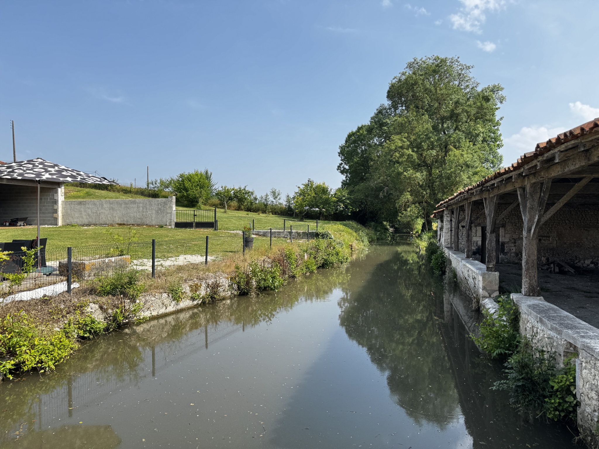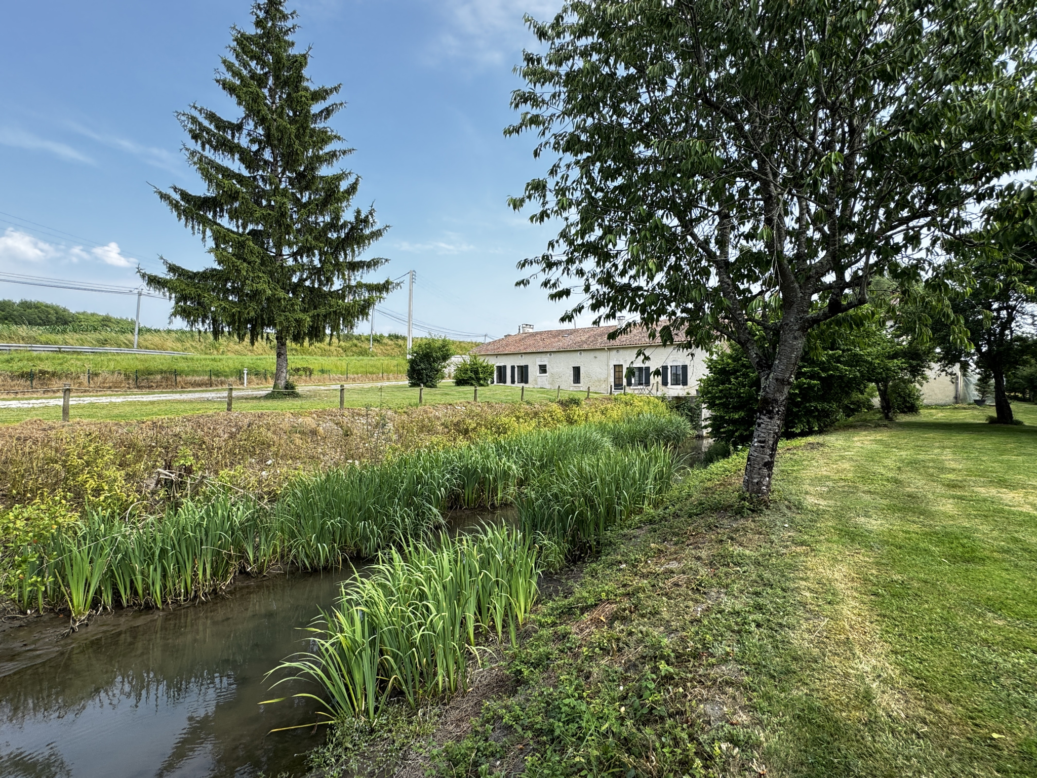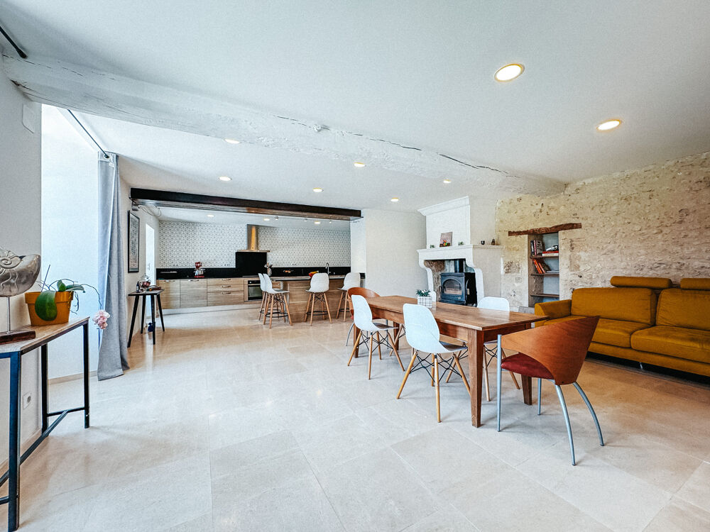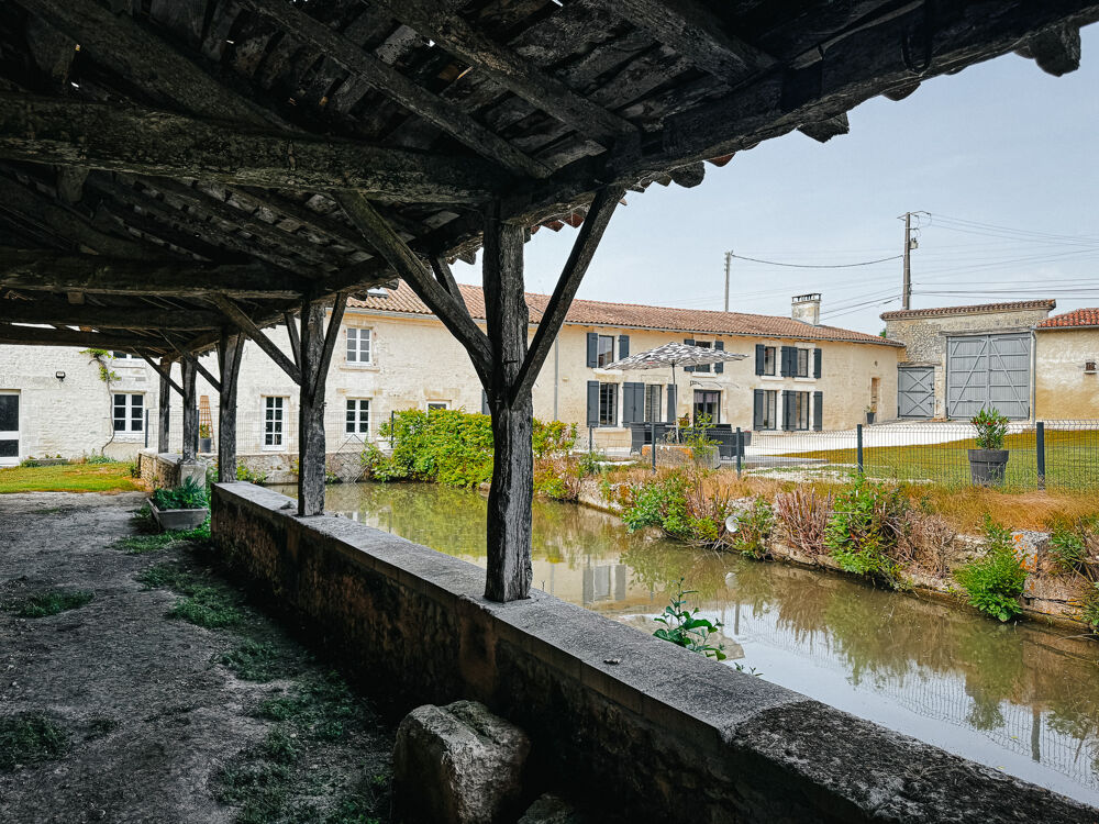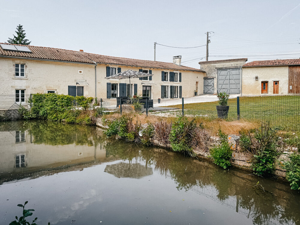 Entre ANGOULEME et BORDEAUX, à proximité immédiate de BARBEZIEUX (16), propriété de caractère comportant une belle demeure et deux moulins, l'un rénové pour la production de farine, et l'autre, un ancien moulin à huile, à réhabiliter. La bâtisse principale, récemment réhabilitée, propose des prestations soignées dans une atmosphère sobre et chaleureuse. Pour le bien être du lieu, les matières, de provenance locale ou régionale, ont été choisies pour éviter les émanations. Isolation en laine de bois et ouate de cellulose rendent le bâtiment très économe. Chauffage au sol par PAC et ballon thermodynamique solaire. Belle entrée qui distribue un salon cosy et un vaste séjour avec cuisine équipée, complété par une arrière-cuisine. Dallage en pierre, cheminées anciennes, lumière traversante : l'ensemble dégage une élégance discrète. Une chambre avec dressing et salle de bains complète le rez-de-chaussée. À l'étage, trois chambres mansardées, dont une avec salle d'eau et dressing. À l'extérieur, l'authentique appentis en bord de bief, à rénover, est plein de charme. Le moulin avec droit d'eau fondé est un atout indéniable. Un laboratoire a été aménagé autour de l'ancien four à pain pour une exercer une activité artisanale. Plus de 4 hectares attenants, composés de prairies naturelles avec DPB, conviennent aussi bien à la culture biologique qu'à l'accueil d'animaux. Il est possible de reprendre environ 13 ha de terre suplémentaires en fermage proche du site ! Grange indépendante pour garage et stockage. Le verger, la présence de l'eau sans risque d'inondation et l'accès aisé par une route de campagne ajoutent à l'équilibre du lieu.Les informations sur les risques auxquels ce bien est exposé sont disponibles sur le site Géorisques : www.georisques.gouv.fr