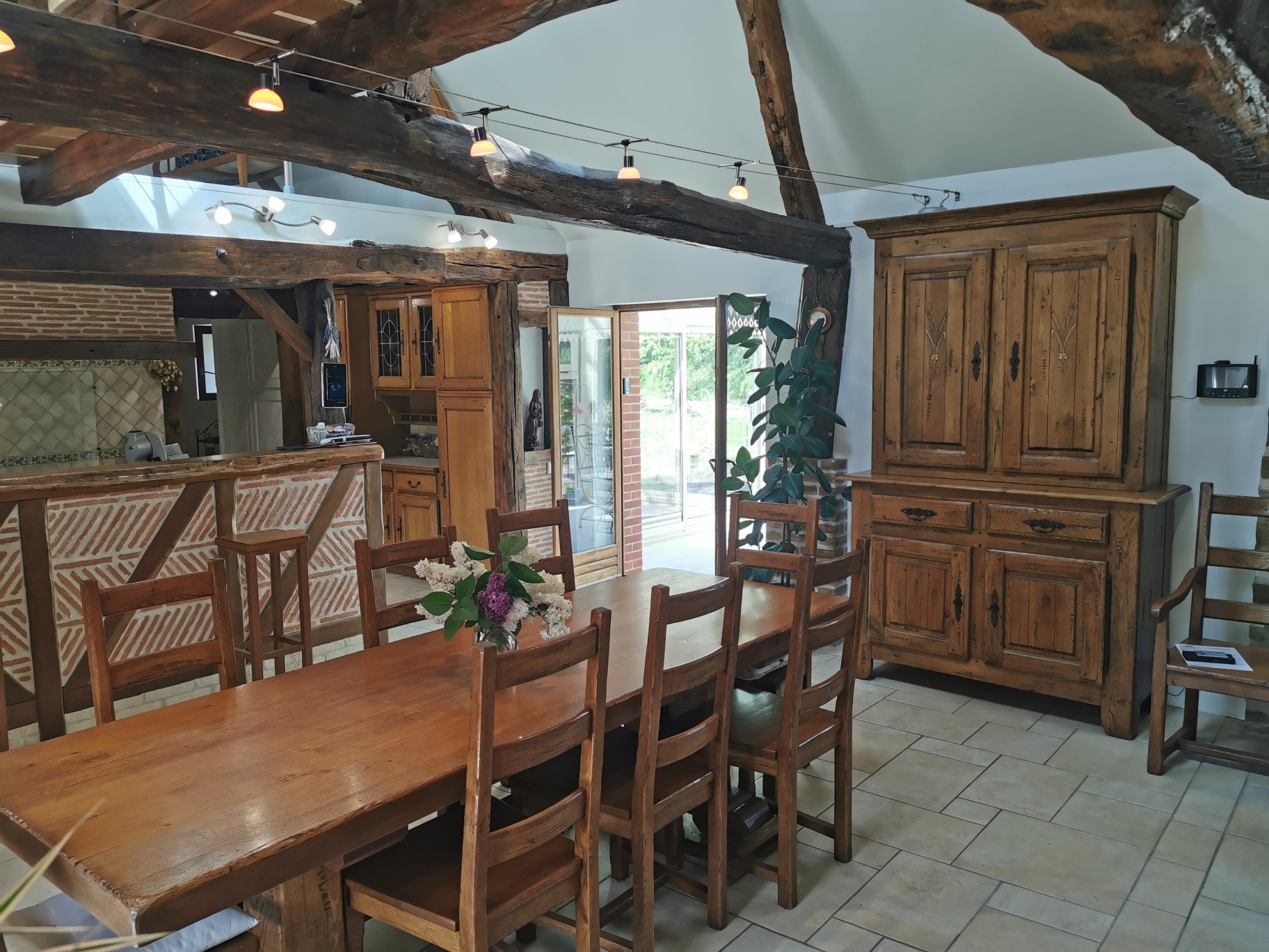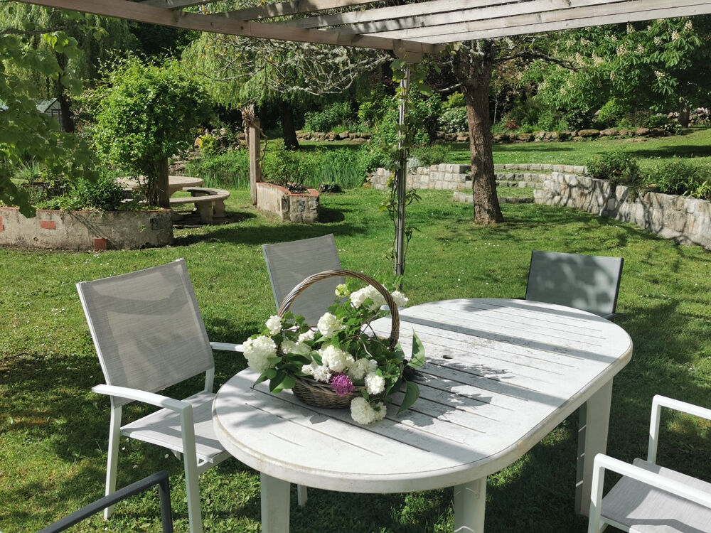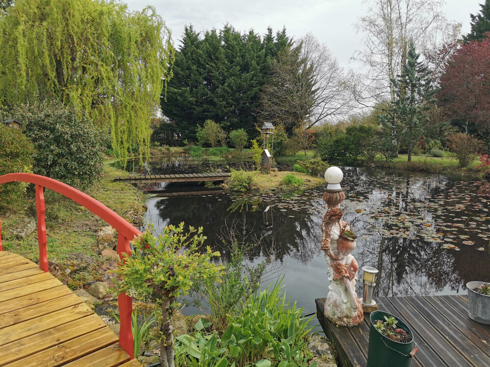 Très belle longère restaurée avec goût et avec de beaux matériaux: une pièce à vivre avec cheminée d'environ 95m2 et un espace cuisine aménagée, une véranda s'ouvrant sur un plan d'eau. Un couloir dessert la salle de bains avec douche à l'italienne, baignoire et vasque, une buanderie, un WC, et deux chambres de plain pied de 16 et 13.50m2 avec placards. A l'étage: deux chambres en enfilade, une mezzanine pouvant servir de bureau et une partie grenier aménageable. Une maison d'amis avec un séjour / salon avec cheminée, une véranda, une cuisine et une salle d'eau et à l'étage: trois chambres. De nombreuses dépendances: un garage, une grange avec un atelier de 42m2, une cave, un cellier et un abris de jardin style chalet de 17m2.Le tout sur un terrain arboré et fleuri de 9700m2 avec deux mares, puits et autres aménagements. Les informations sur les risques auxquels ce bien est exposé sont disponibles sur le site Géorisques:'www.georisques.gouv.fr'. Appelez T.TALLONDétails :