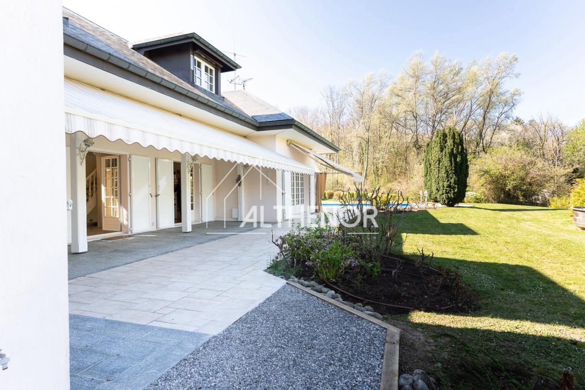 Exclusivité Althenor !Située dans le hameau des Blécheins à Archamps, cette propriété d'architecte allie volumes généreux, prestations soignées et écrin de verdure. Construite en 1978, elle se déploie sur un terrain sans vis-à-vis avec vue sur le Jura.