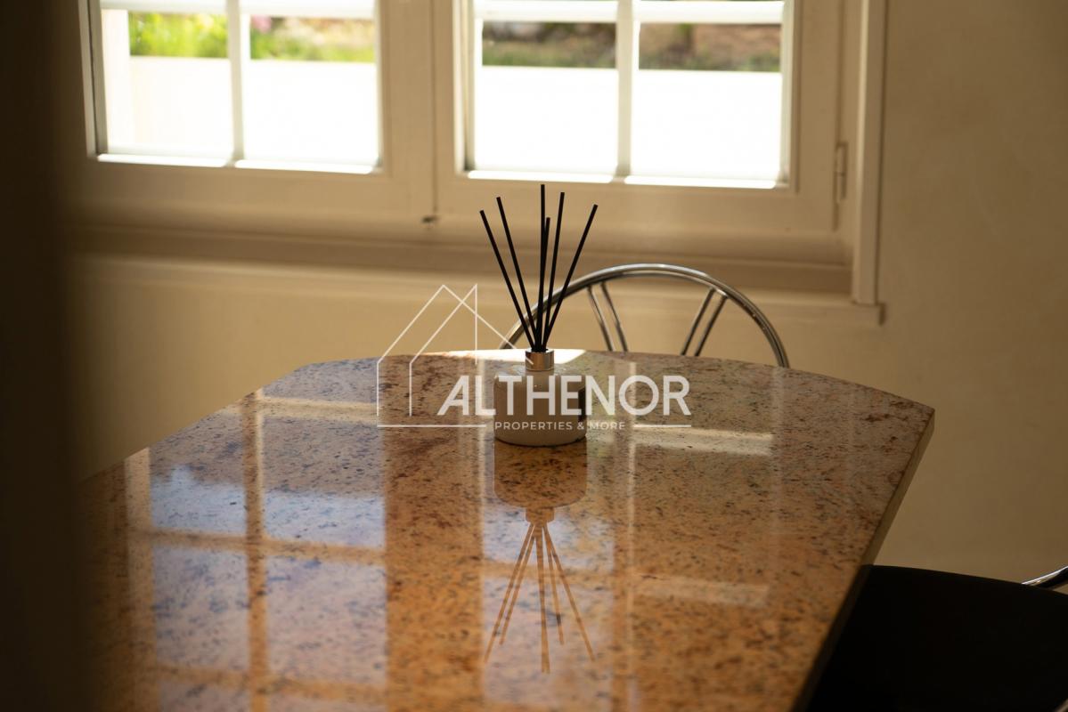Au rez-de-chaussée, elle est composée d'une entrée avec réduit, d'un vaste espace jour comprenant salle à manger, salon et cuisine séparée et entièrement équipée, et d'un espace nuit avec trois chambres, une suite parentale dotée d'un dressing et d'une salle de bains privée, une salle de bains supplémentaire et un toilette.