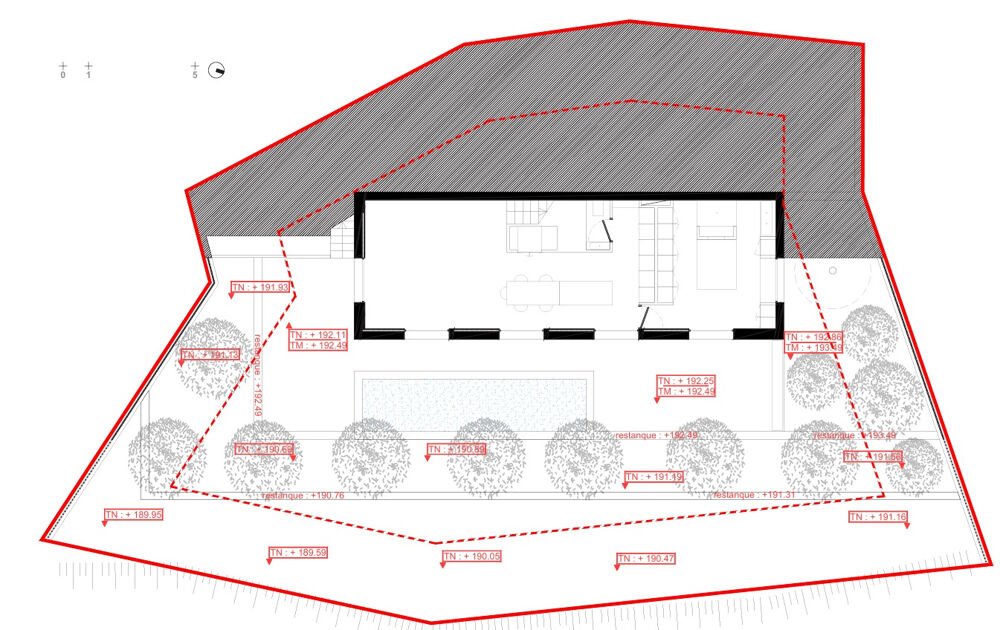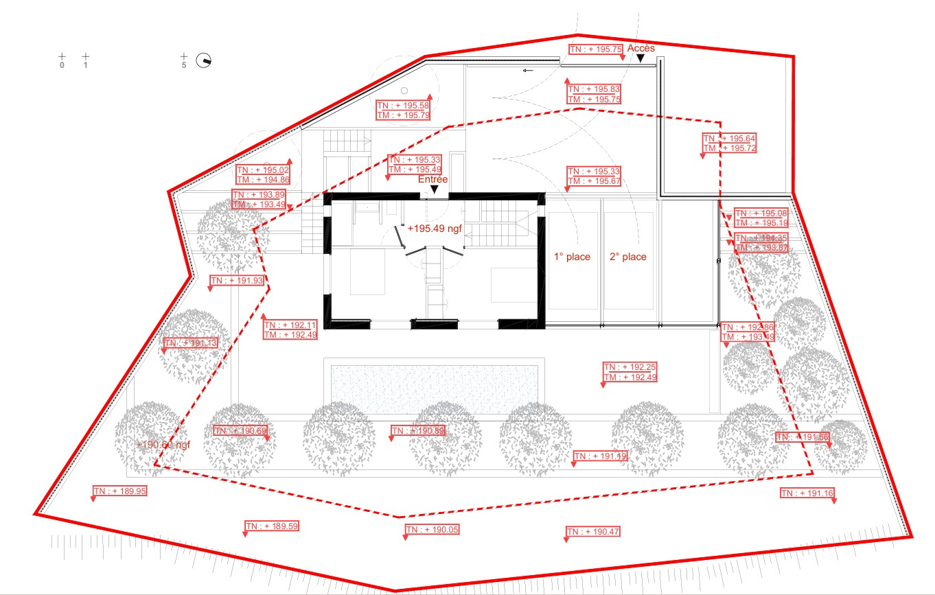 Le futur projet de cette maison familiale s'implante parallèlement aux courbes topographiques du terrain.