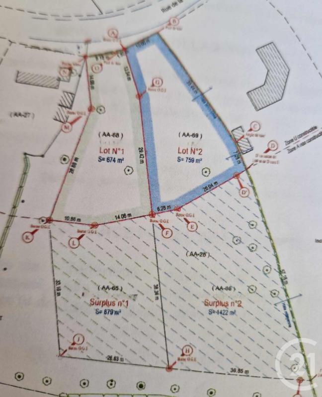 Terrain borné avec possibilité de construire deux maisons (2 parcelles constructibles de 674m² et 759m²)