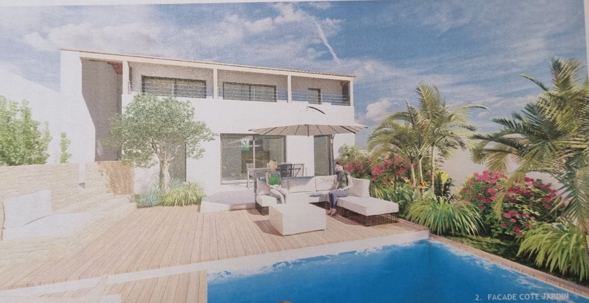 Le projet prévoit la réalisation d'une maison de type 4 de 119.9m² avec un garage de 34.70m², une piscine de 4x8 ainsi que de nombreuses terrasses.