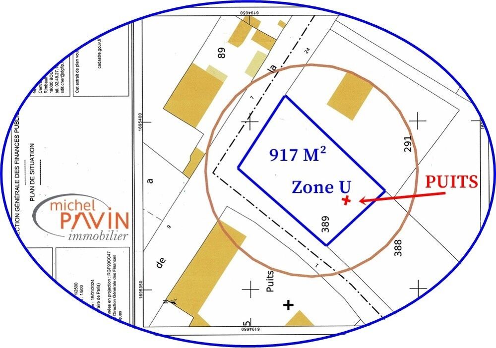IMMOBILIER en Centre France, michel PAVIN-IMMOBILIER à La Guerche sur l'Aubois 18150, vous propose à la campagne, à la sortie du village direction Bourges, ce magnifique terrain plat à construire, à une volée de moineaux du centre-ville, dans un cadre bucolique, enchanteur et serein.917 m² de terrain orienté est/ouest en bordure d?une route départementale avec une façade de 25 m qui vous permettra facilement de vous raccorder aux réseaux, d?électricité, de téléphone (fibre) et d?eau (elle existe déjà sur le terrain) et de tout à l?égout, il est situé en zone U, et possède un puits inépuisable même par grande sécheresse.