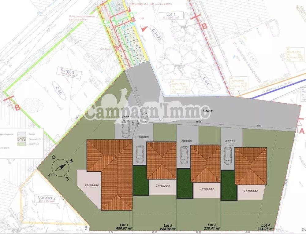 Superficie des lots : de 238 m² à 591 m²