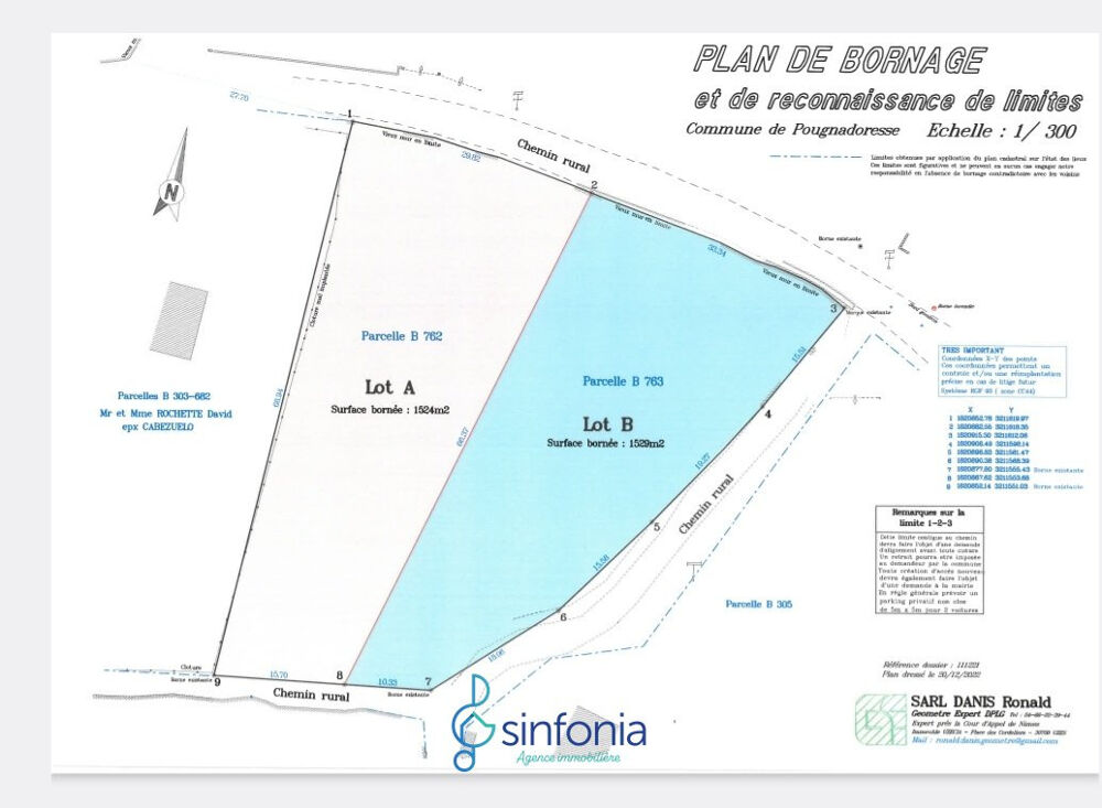 A vendre terrain constructible à Pougnadoresse .En EXCLUSIVITE LOT A Terrain de 1 500 M2 Emprise au sol de 30% (450 m2 au sol )