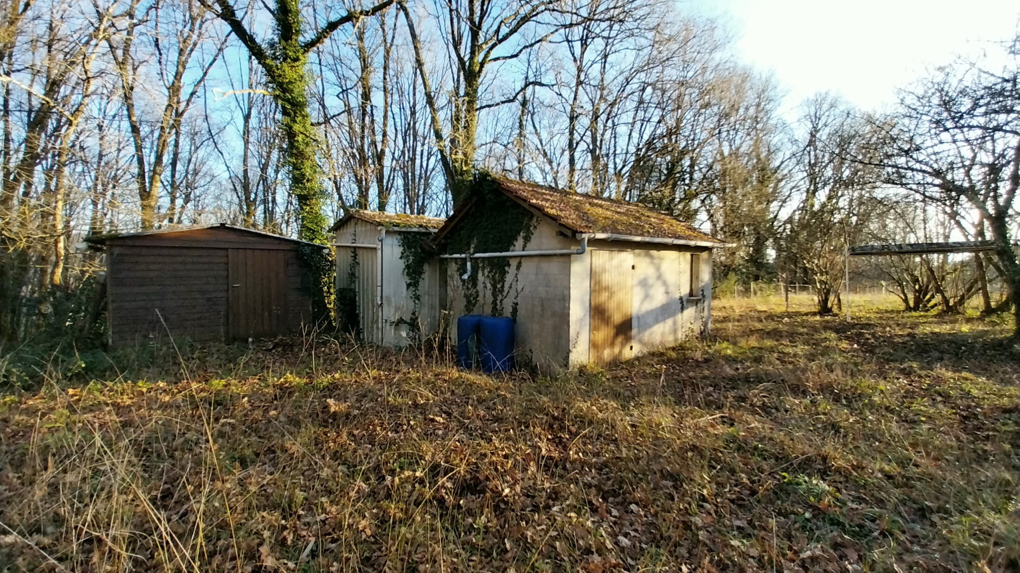 Sur 1775 m2 plats, vous trouverez un garage, un atelier et un châlet déjà bâtis placés en fond de parcelle.