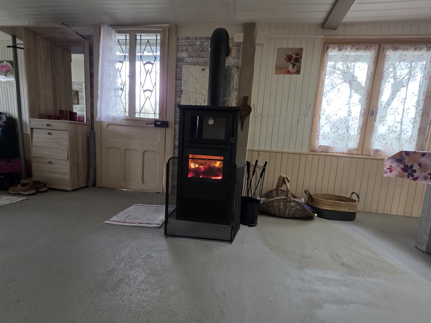 Il est équipé d'un poêle à bois performant, idéal pour un confort optimal en toute saison.