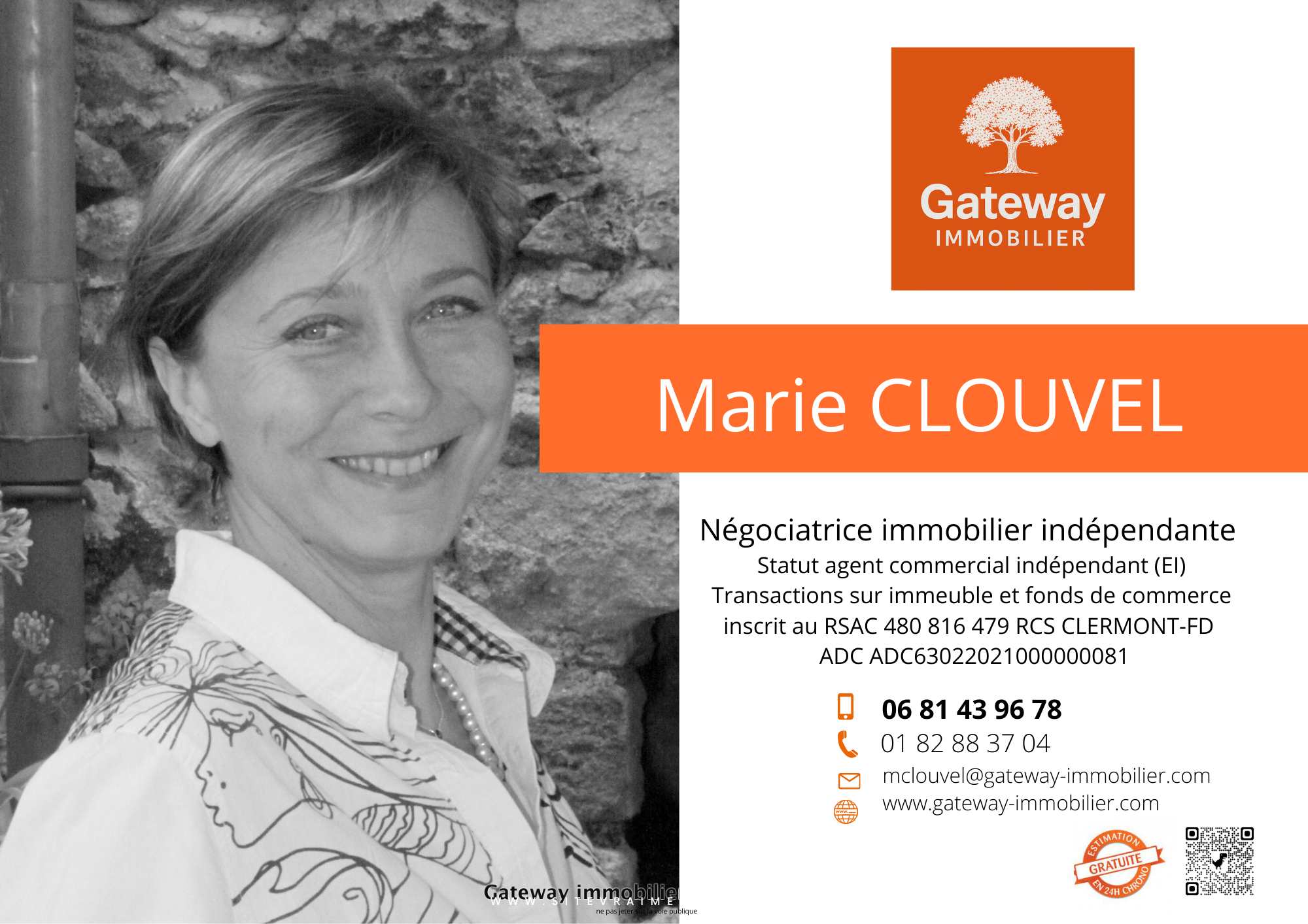 La présente annonce a été rédigée sous la responsabilité éditoriale de Marie CLOUVEL (E.I) consultante immobilier indépendante inscrite au registre spécial des agent commerciaux indépendant sous le no RSAC 480 816 479, titulaire de la carte de collaborateur No ADC 6300 081 pour le compte de la SAS GATEWAY Immobilier Siret 537 849 093. Cette annonce vous est proposée par Gateway immobilier, Réseau national immobilier, au capital de 2 000EUR, Carte professionnelle T no CPI 6324 143 CCI du Puy-de-Dôme.