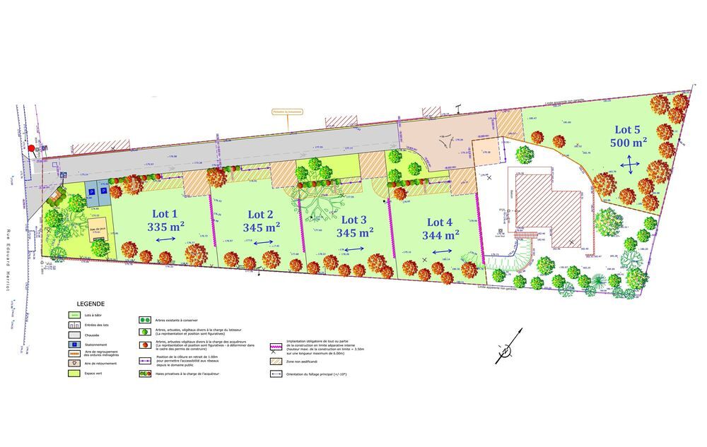A vendre,5 Parcelles de terrain à bâtir idéalement situées entre le centre de Jassans et l'accès à Villefranche sur Saône.