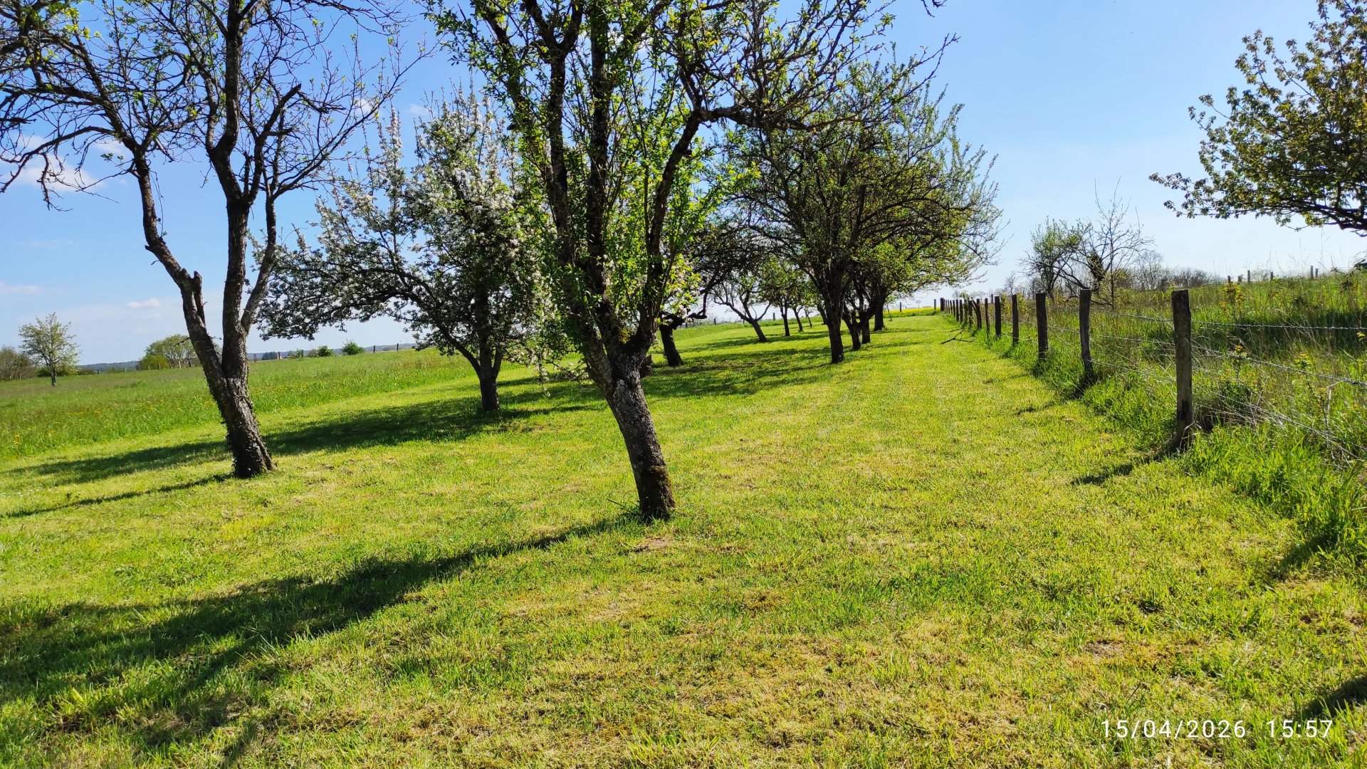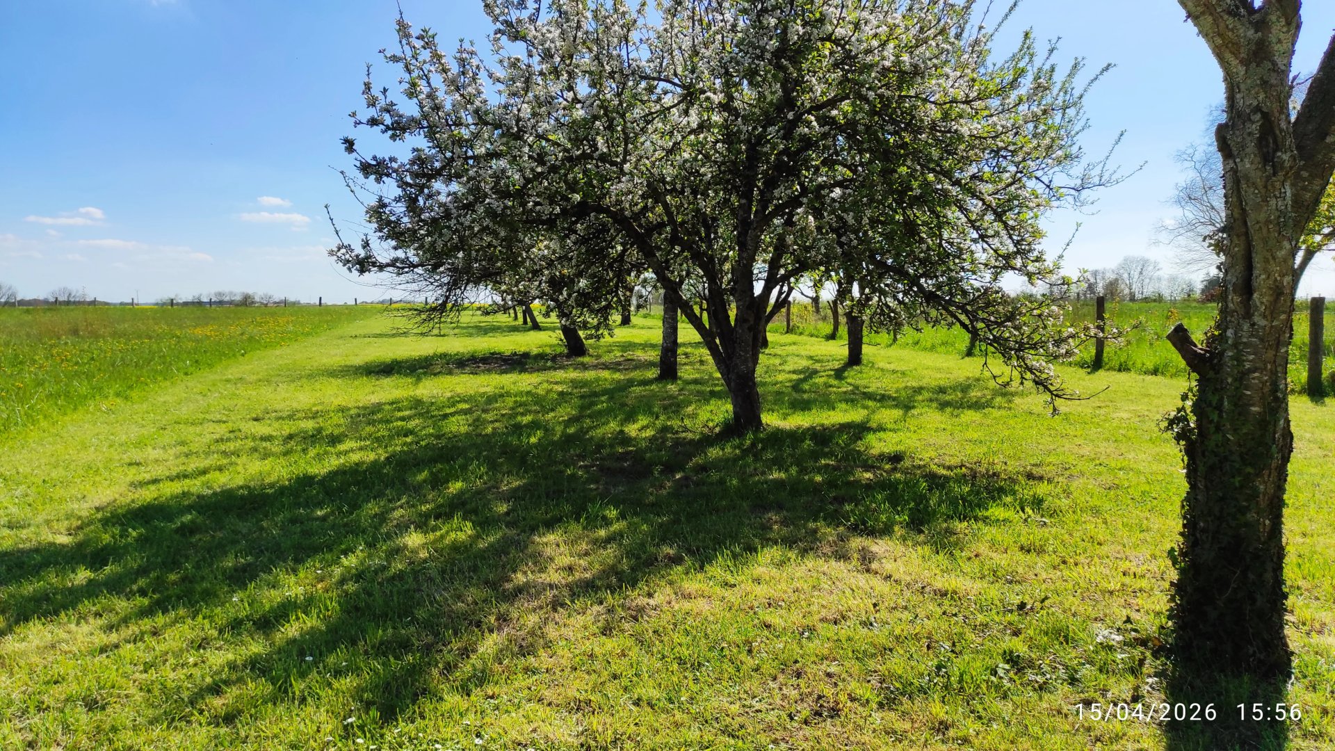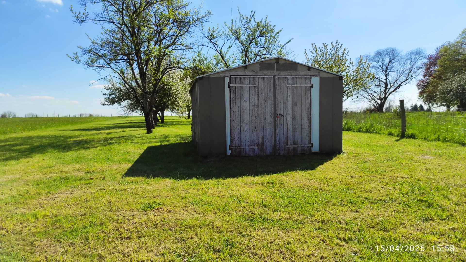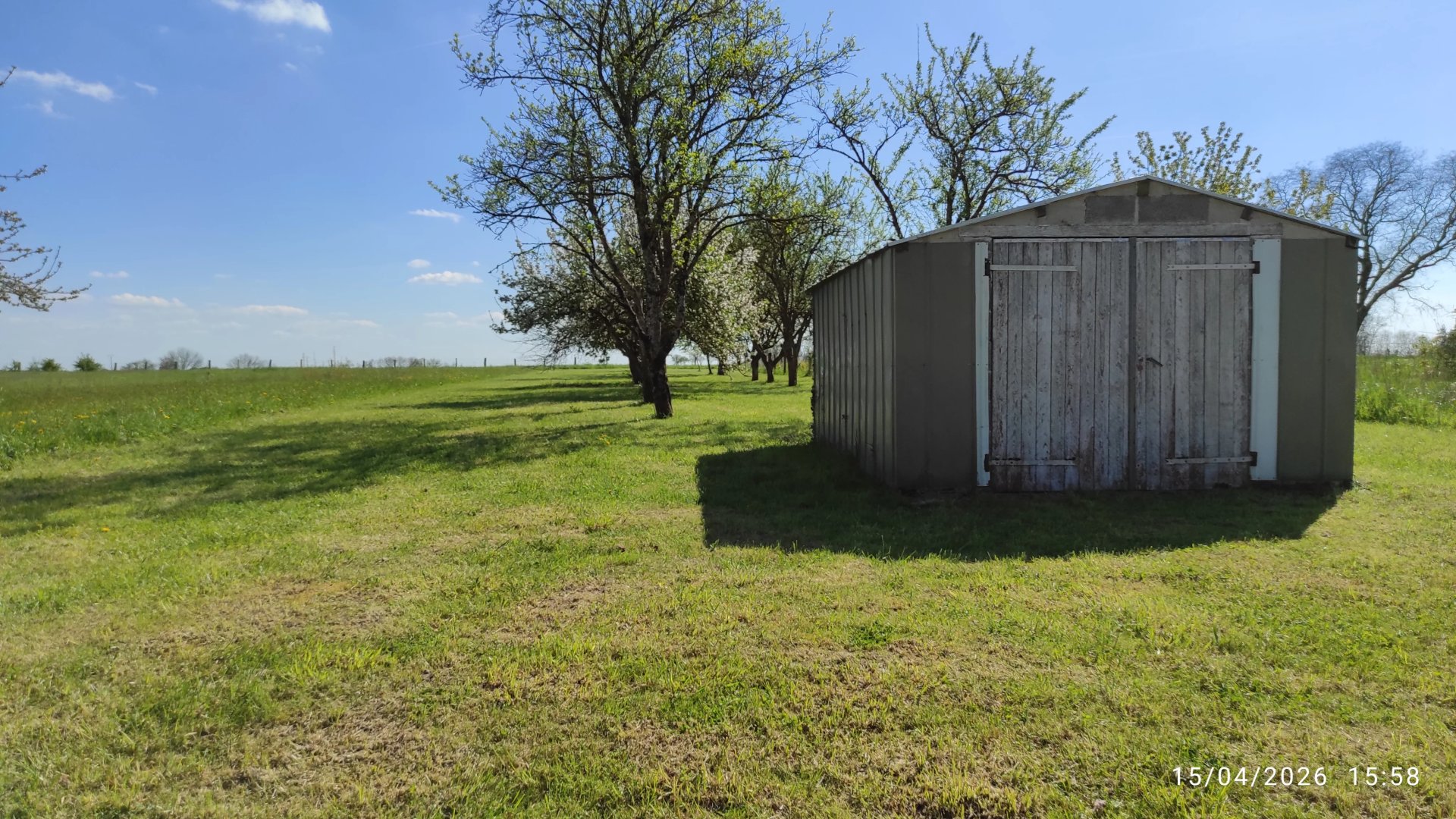 Très joli terrain plat, constructible de 1127m², avec de nombreux arbres fruitiers et une jolie dépendance.