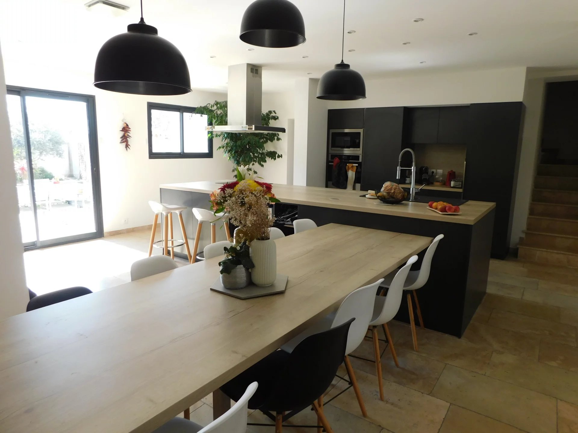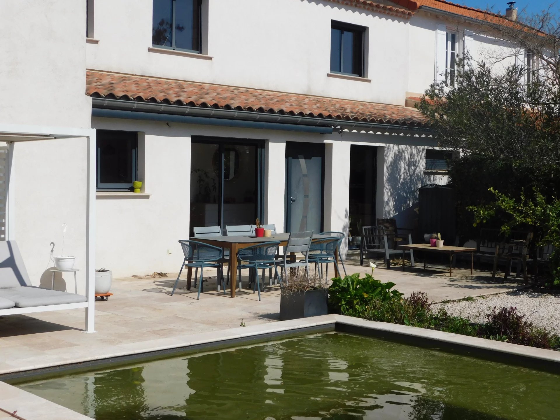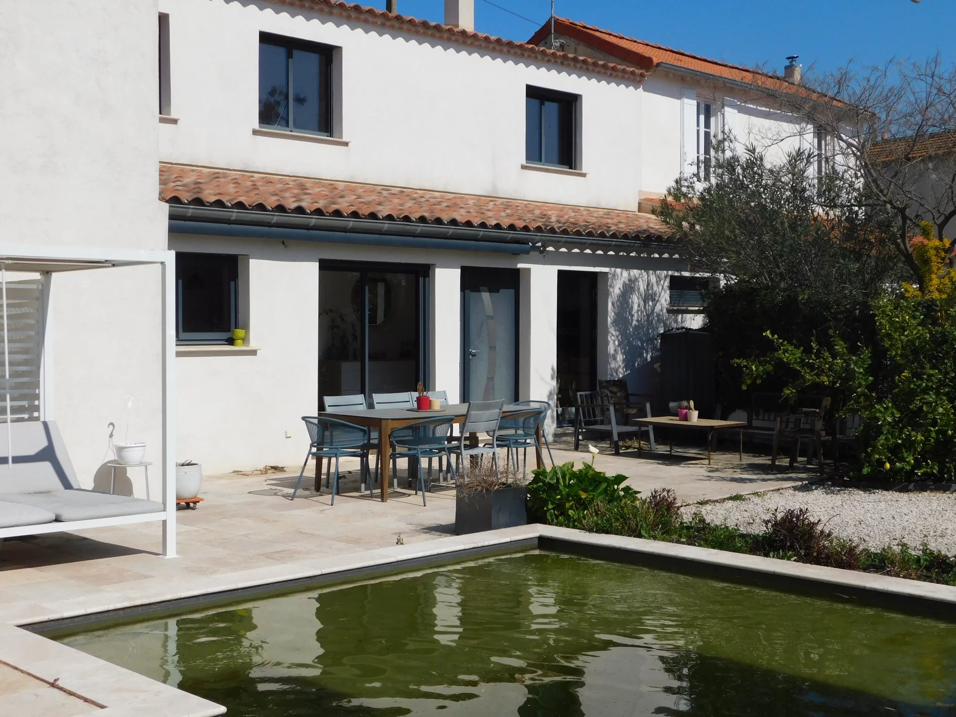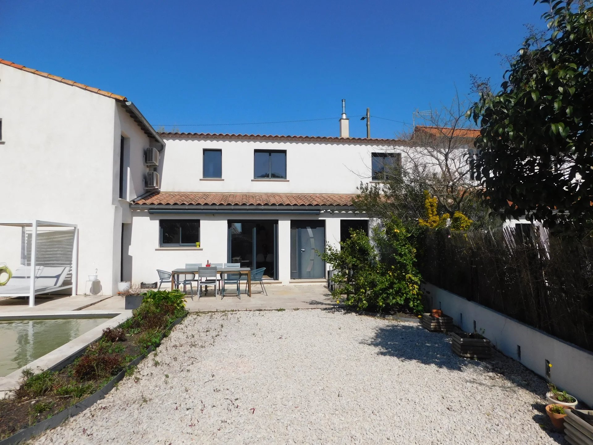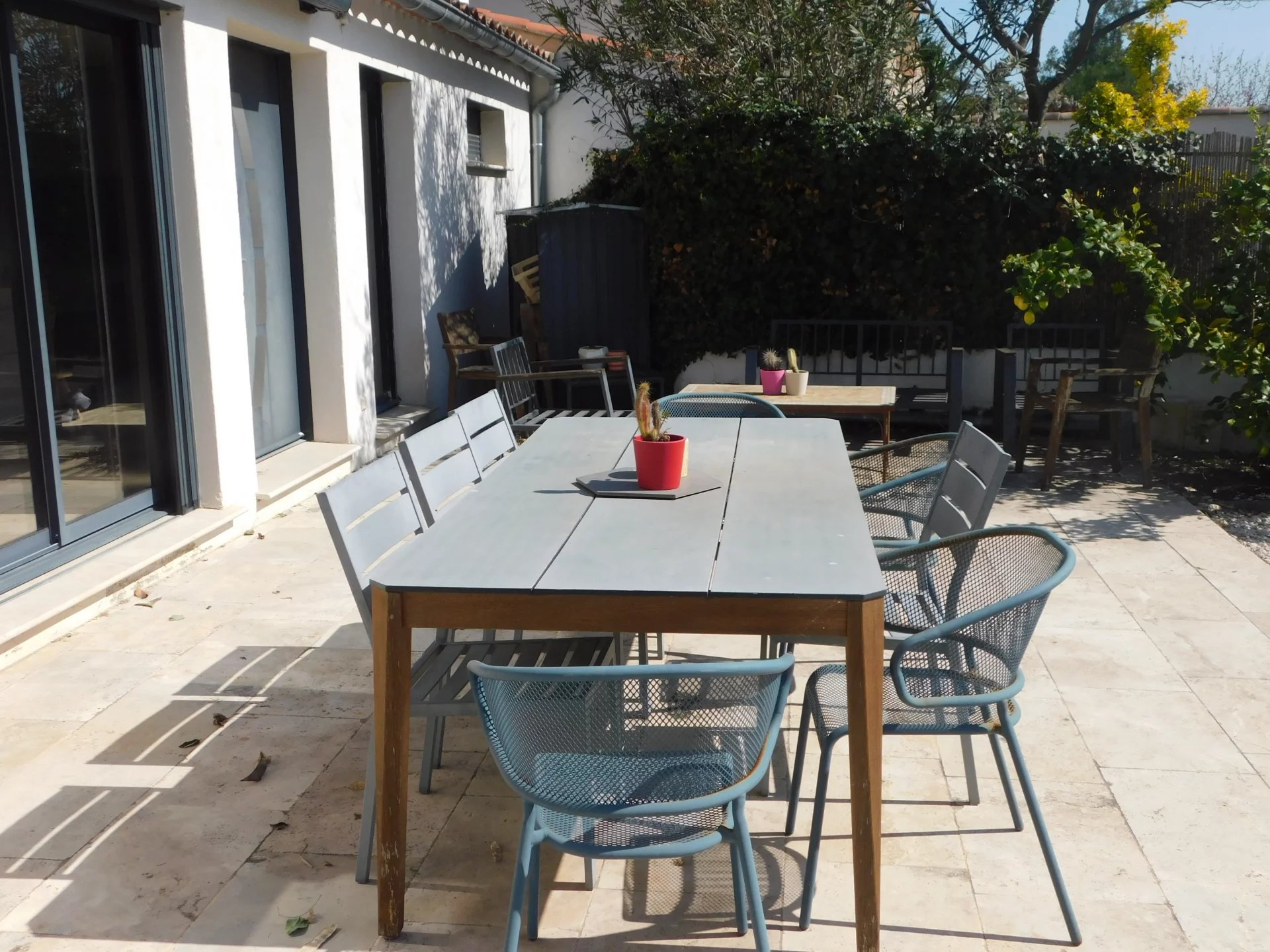 Rénovée avec soins cette maison développant une surface utile de 153m2 est composée de trois chambres, deux salles d'eau, un espace de vie (salon-séjour-cuisine équipée) de 70m2 communicant avec la terrasse, buanderie et toilettes.Jardin clos et arboré intégrant une terrasse une piscine de 4x4 et plage de 9m2 au sel, ainsi qu'un espace de stationnement.
