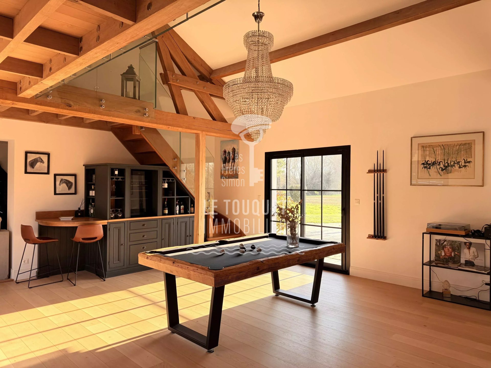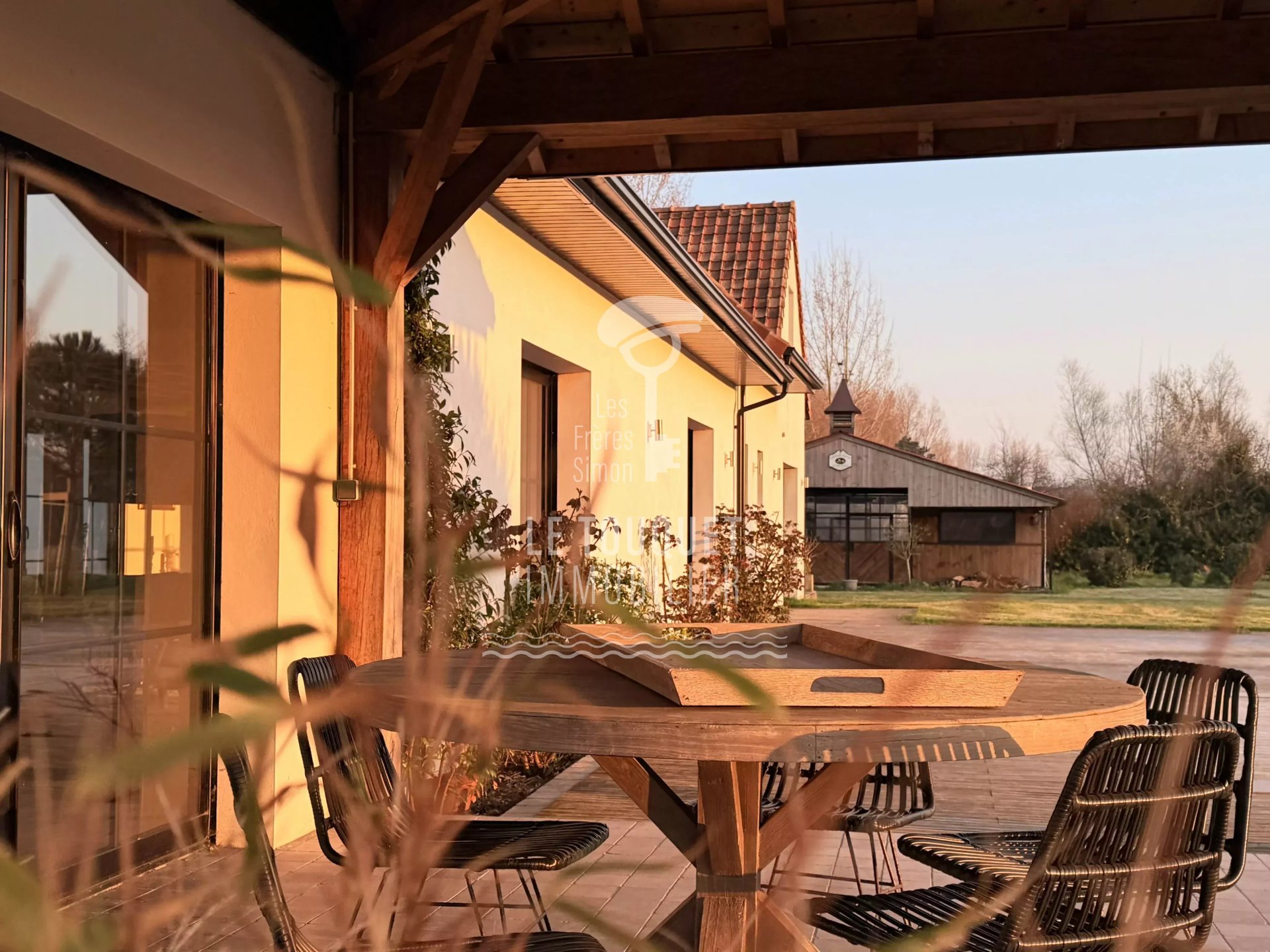 La maison principale propose de superbes espaces de réception baignés de lumière, sublimés par deux cheminées, ainsi qu'une cuisine haut de gamme signée Slots, parfaitement équipée.