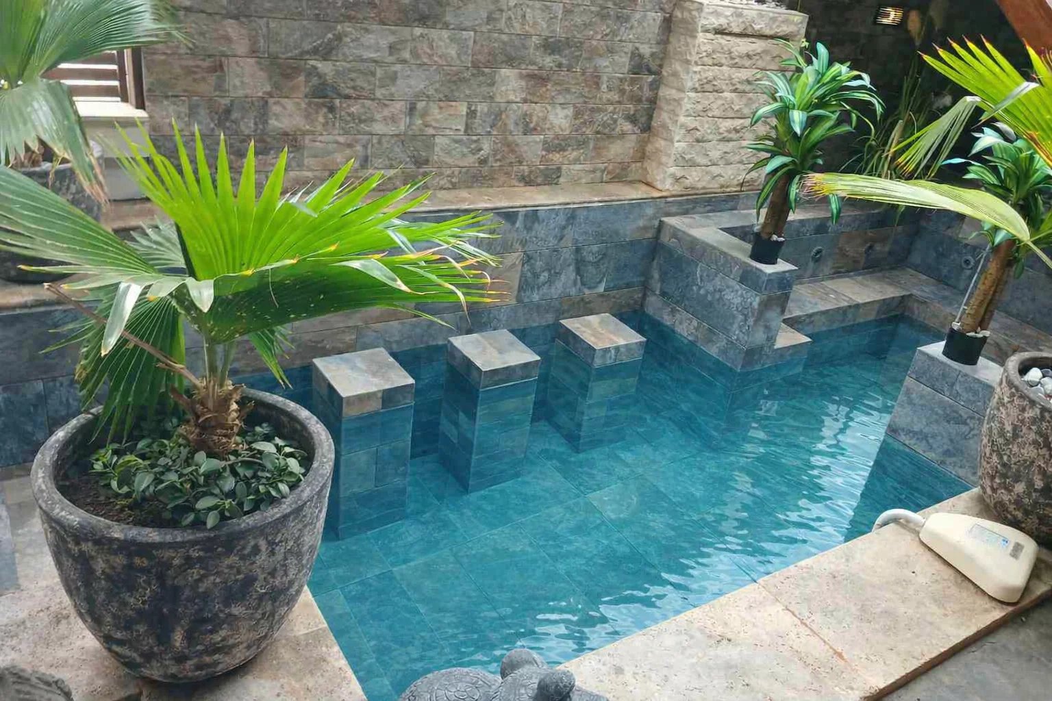 grande piscine avec espace jacuzzi / spa