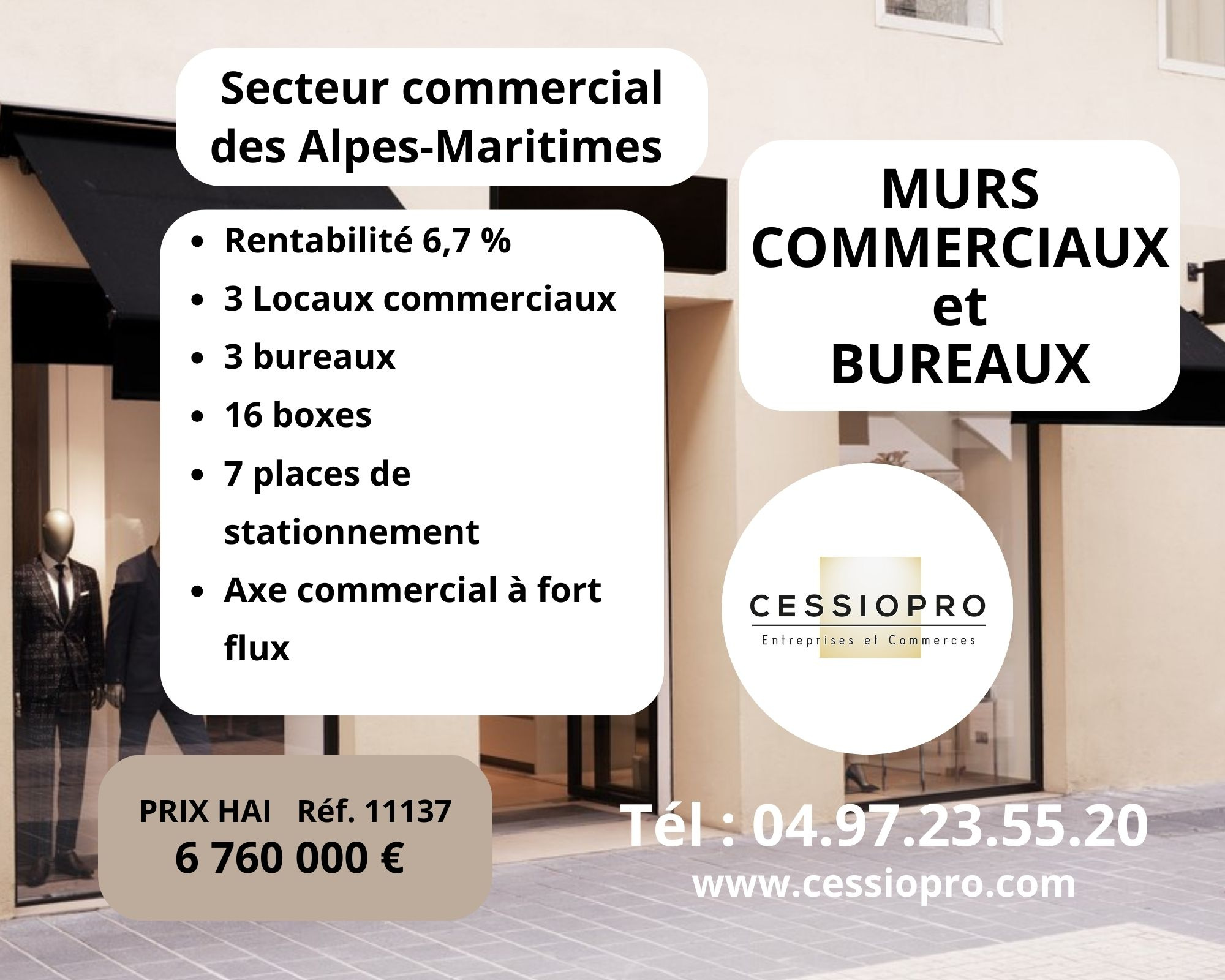 Murs commerciaux et bureaux Rentabilité 6,7 % brut Secteur commercial dynamique ALPES-MARITIMES